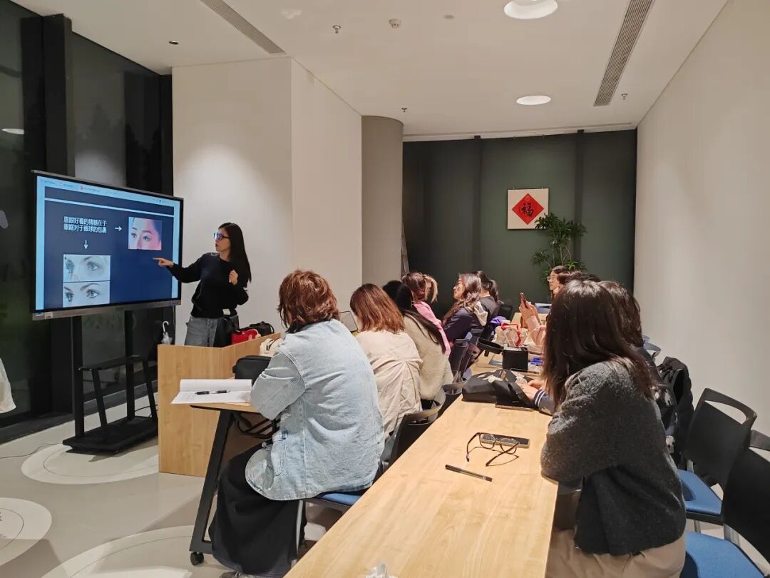 尊巴课程刚一结束,美妆教室便迅速热闹起来,学员们陆续抵达,手里提着装满化妆品的化妆包,眼神里满是期待。