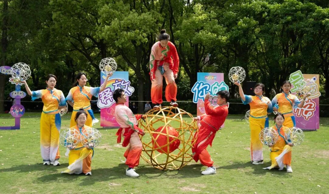 活动当天,新虹桥中心花园的草坪舞台上,7支精品节目接连亮相。YUE智学苑·星火啦啦队带来《火之同心》,用青春力量点燃全场热情,随后,有着700多年历史的国家级非遗奉贤滚灯《灯影流转筑梦青春》、北新泾宁馨舞蹈队的《云水花溪》、上海小茉莉艺术团《执镜俑》等特别节目倾情献演,现代活力与传统非遗碰撞出耀眼火花。