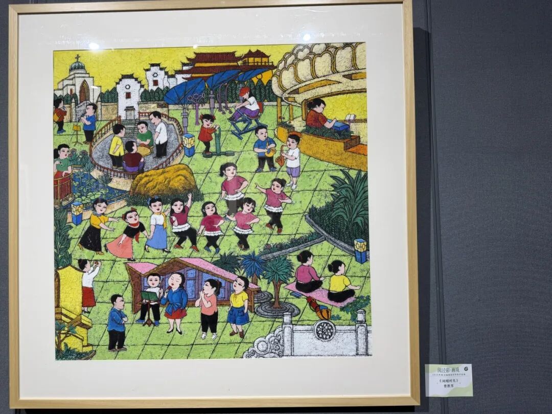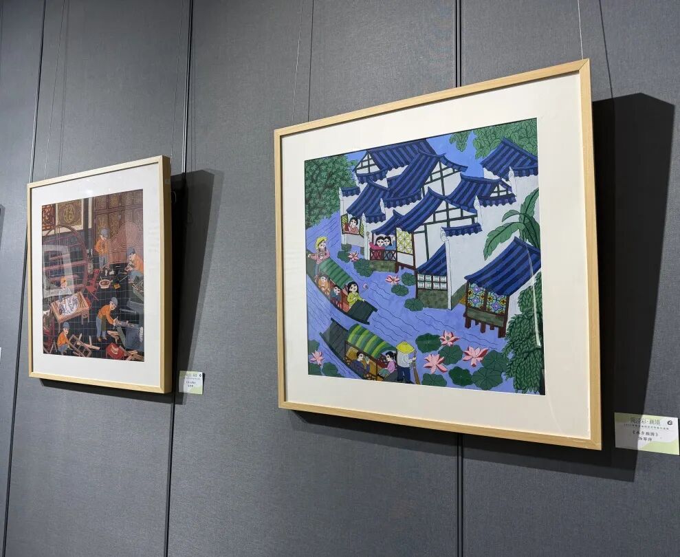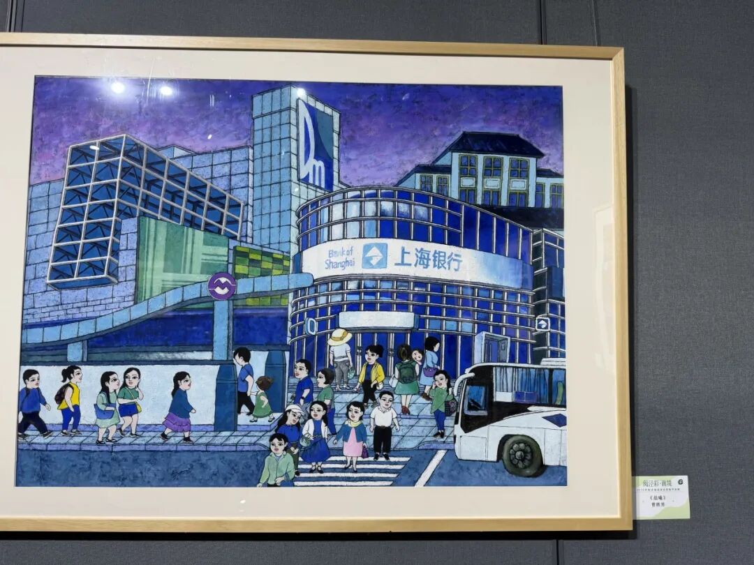 步入展厅,一幅幅色彩浓烈的画作映入眼帘,质朴中透着鲜活,传统里藏着新意。这些画作展现了新泾镇的文脉、水脉与绿脉以及社区生活、城市风貌,承载着创作者对家园的热爱与对生活的感悟。