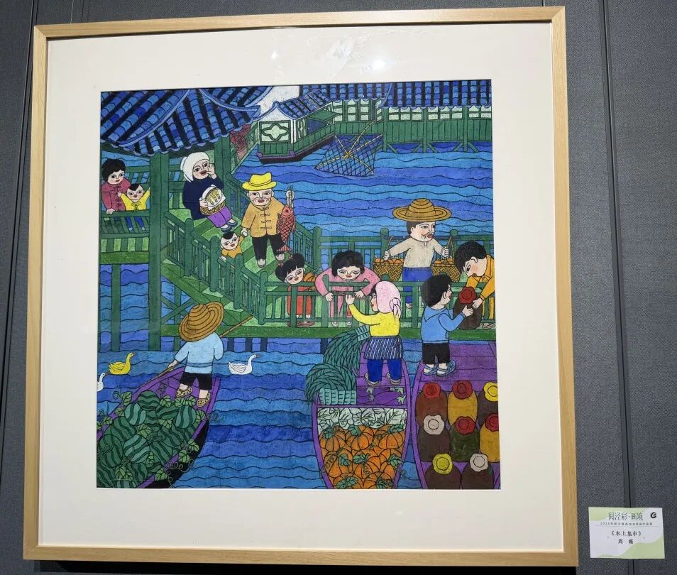 正是这种深耕,结出了丰硕的成果。本次展览中的方奇敏《丰收喜悦传千里》与周嫤《游在青山绿水间》两幅作品,此前成功入选中国国家博物馆“大地绘彩·2025年农民画大展”。另有多幅作品曾参展江南之春美展等市级以上重要展览。大部分作品为首次公开展出,呈现创作班近年来的优秀画作。