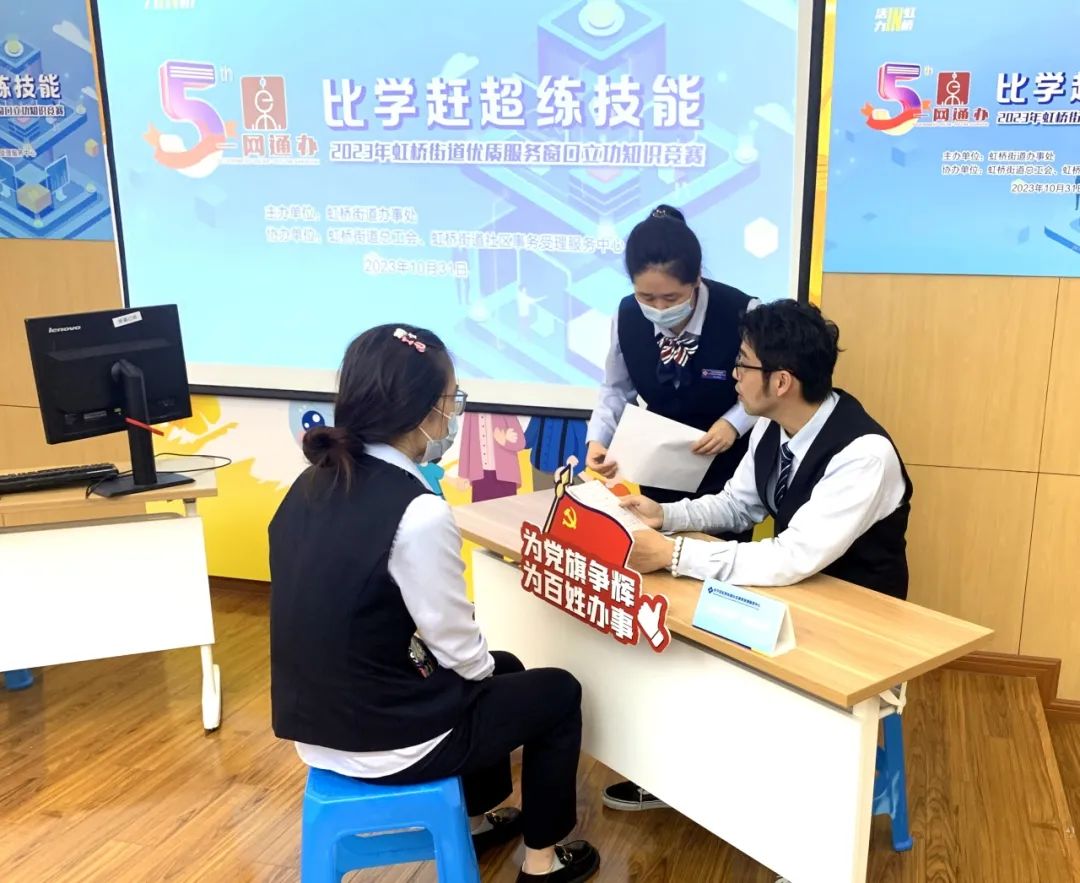 为了全面提升政务服务能级,近日,虹桥街道社区事务受理服务中心结合主题教育,以“一网通办”五周年为契机,开展了“以赛促学增能效 比学赶超练技能”——2023年虹桥街道优质服务窗口立功知识竞赛。