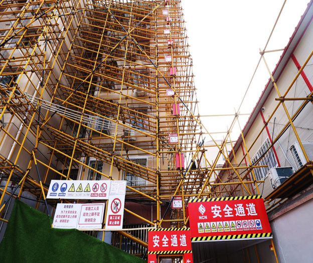 针对建筑工地涉及扬尘、噪声以及安全生产等施工中与居民的生活息息相关的问题。施工队正式进场后,把惠民、利民、不扰民的施工管理作为首要考量。施工时,不但搭建好脚手架、临边围护、防护棚等设施,考虑到小区老人较多,施工单位还特意做好了细节的把控工作,做好路面铺设和围栏等保护措施;考虑到有些高龄老人行走不便,项目组还安排人员每天为其代买物资送上门。