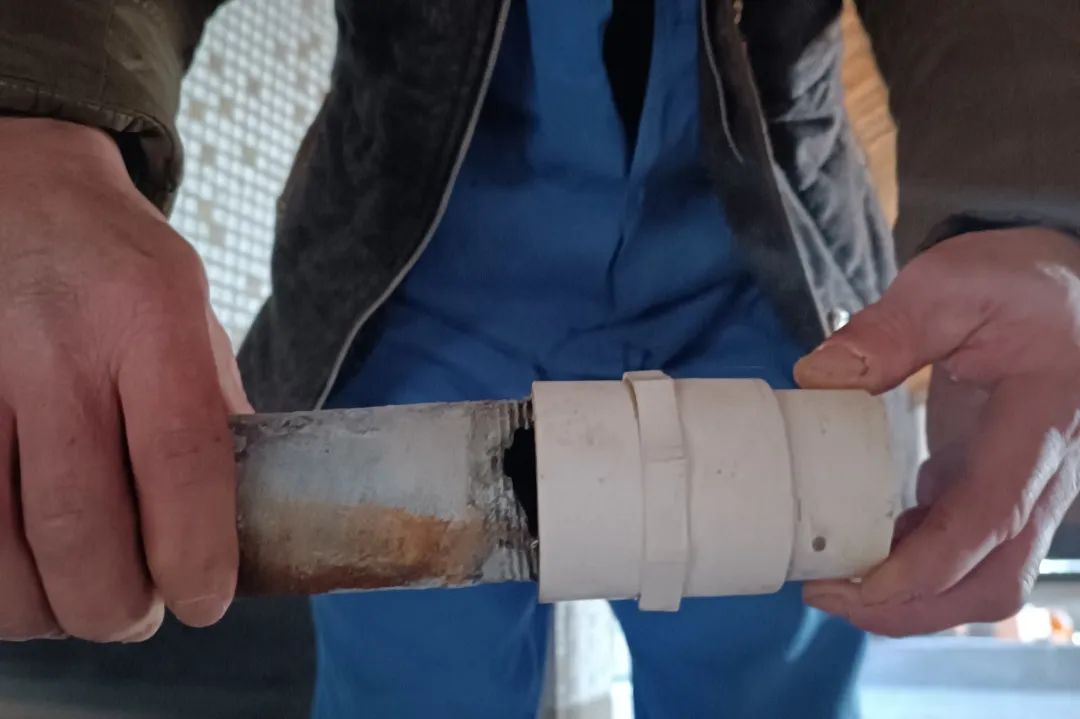 维修工人赶赴现场及时处理了居民家中的漏水点,还发现漏水是因楼顶水箱进水管老化所致,需要更换水管。金浜路105弄是个有着近30年历史的老公房小区,市场上也很难买到相同型号的水管,再加上尚未进行二次供水改造,不在自来水公司的报修范围内,水管维修顿时陷入解决困境。