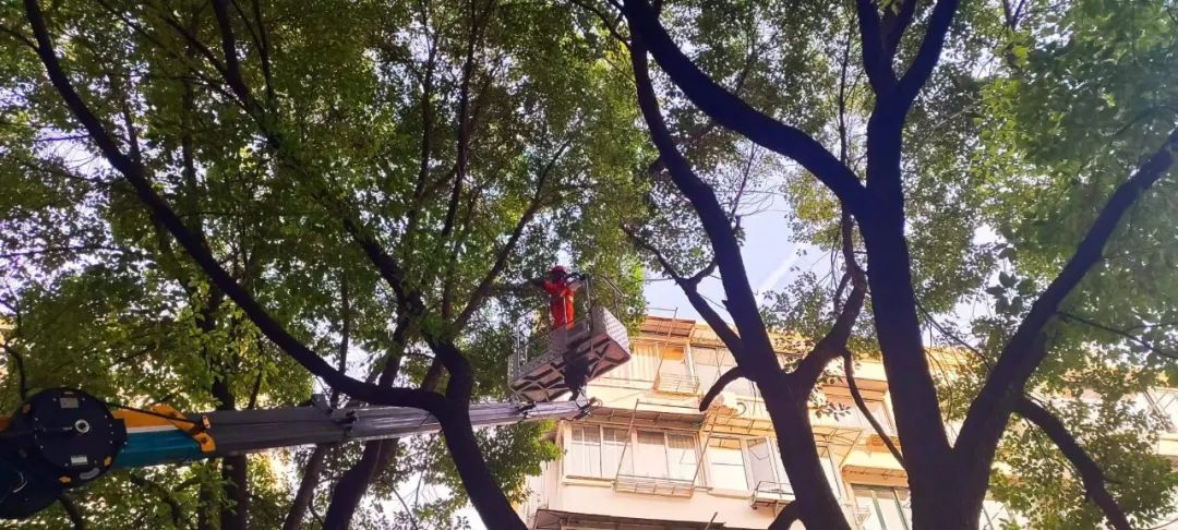 经过沟通协调,长宁绿建公司安排专人,开来了高空作业车,对影响采光的树枝进行修剪,最大程度地减少对居民造成的采光影响。