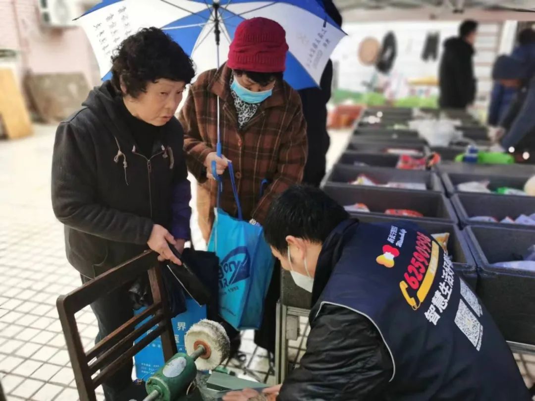朱阿姨则跟她的“小姐妹”一起,拿着家里的菜刀、剪刀结伴前来磨刀。她告诉记者,现在已经很少能看到磨刀师傅了,听说这次“慧享集市”上有磨刀服务,早早就赶过来了。“内容一次比一次丰富,不仅给我们提供了一个热闹交流的场所,还提供了很多实用的生活服务。期待以后能安排更多的集市活动,让大家在家门口就能享受到便捷的生活。”