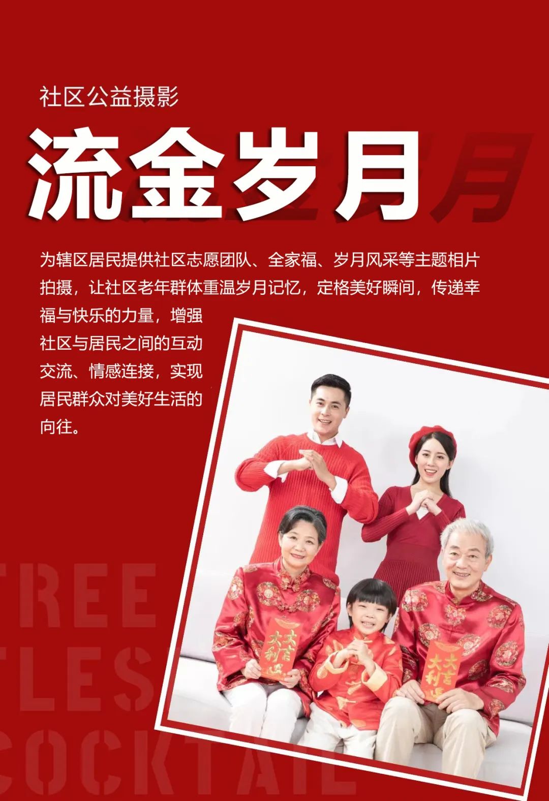 为辖区居民提供社区志愿团队、全家福、岁月风采等主题影像拍摄,让社区老年群体重温岁月记忆,定格美好瞬间,传递幸福与快乐,增强社区与居民之间的互动交流、情感连接,实现居民群众对美好生活的向往。
