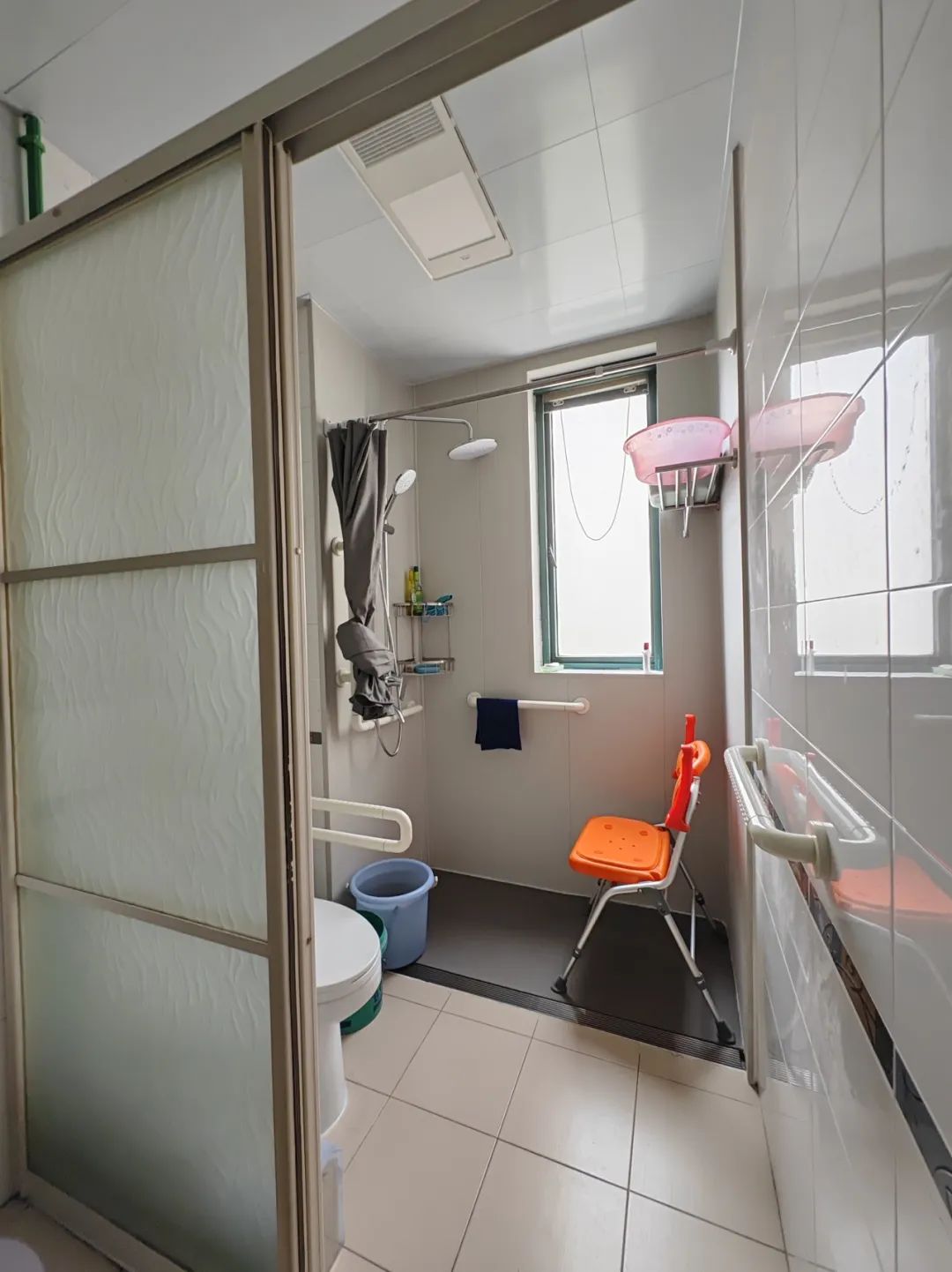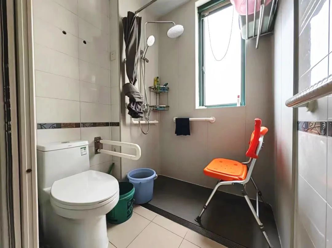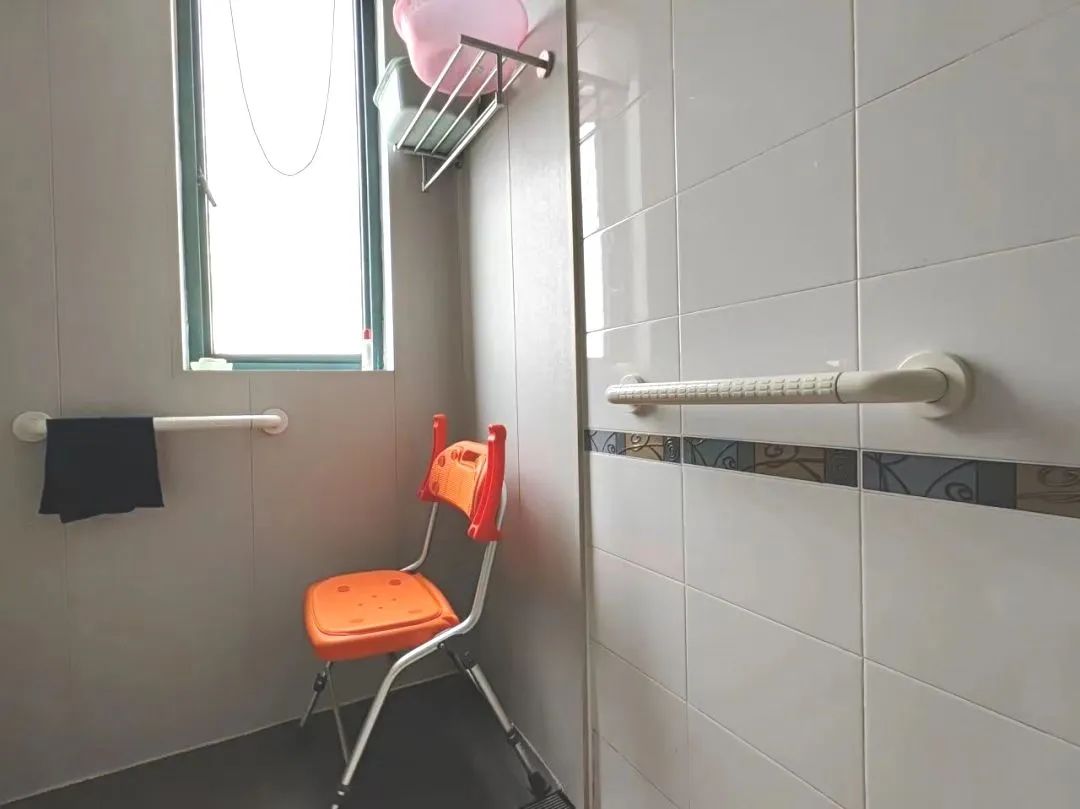 虹欣小区的施阿婆家最近刚经历了一场卫生间“大改造”:拆除了老式浴缸,取而代之的是新铺上的防滑地砖以及与地面持平的长条形地漏,让原本狭小的淋浴空间看上去宽敞亮堂了不少;淋浴区中央摆放了一把可移动折叠淋浴凳,四周则安装了扶手,让老人在洗澡时有了支撑,洗澡也更加轻松、方便。