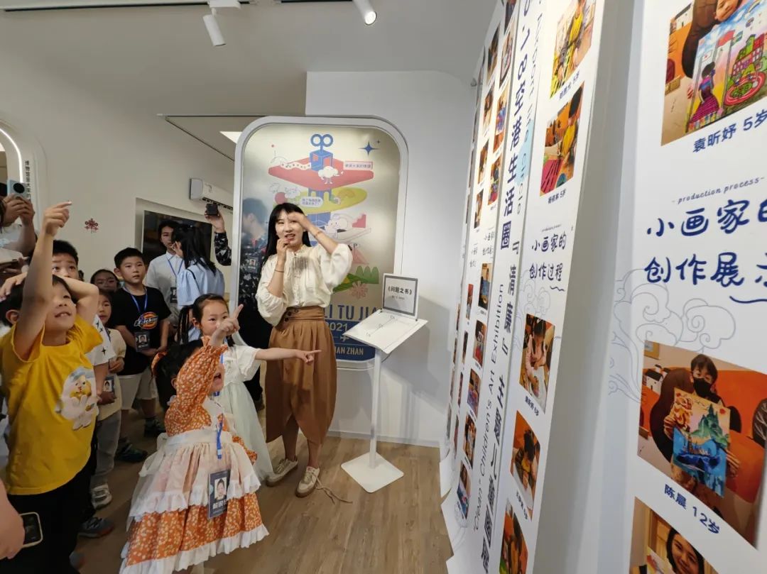 “孩子们年龄虽然小,但作品都很完整,也特别有趣。”“带孩子来当自己作品的讲解员也是很新奇的一次体验,原来小区里也可以让我们自己办展览。”一同前来的家长们表示。