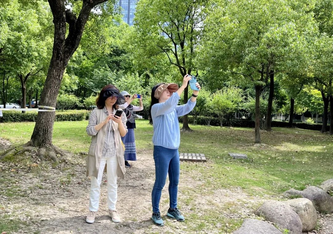在品尝美食后举办的手机摄影学堂,由HONG空间党群服务中心特邀国内知名摄影师钱方勇为大家讲解手机摄影技巧,并走进新虹桥中心花园进行现场实践。