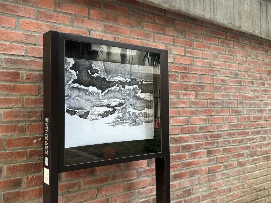除了新华路,定西路602号还有一幅描绘着云卷云舒的《天空》,虽然同样是钢笔画,但画风更显写意,让原本抬头可见的日常,成为了审美的对象。