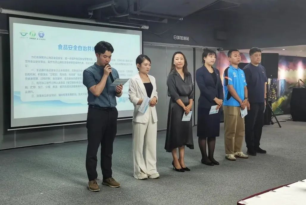 与此同时,天山路街道的楼宇物业、餐饮企业、新就业群体和居民志愿者代表共同宣读了食品安全倡议书,并现场发起食品安全自治共治倡议,表示将并肩携手、同心同行,当好食安“主人翁”,共建“食安天山”。此外,为提升辖区食品安全整体水平,街道还牵头打造食品安全自治共治联盟,吸纳辖区多元主体加入,用实际行动助力天山路街道食品安全工作高质量发展。