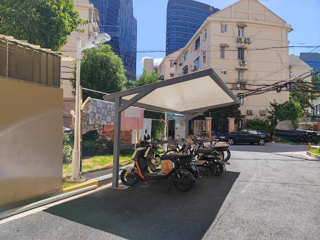 2023年,经过精品小区改造,长顺居民区将原有的4个室内车棚进行改造升级。焕新的空间干净、整洁,更重要的是增加了智能充电桩,方便电动车充电。与此同时,居民区整合有限的空间,见缝插针地修建了24个简易车棚,为居民的车辆搭建了遮风挡雨的“港湾”。
