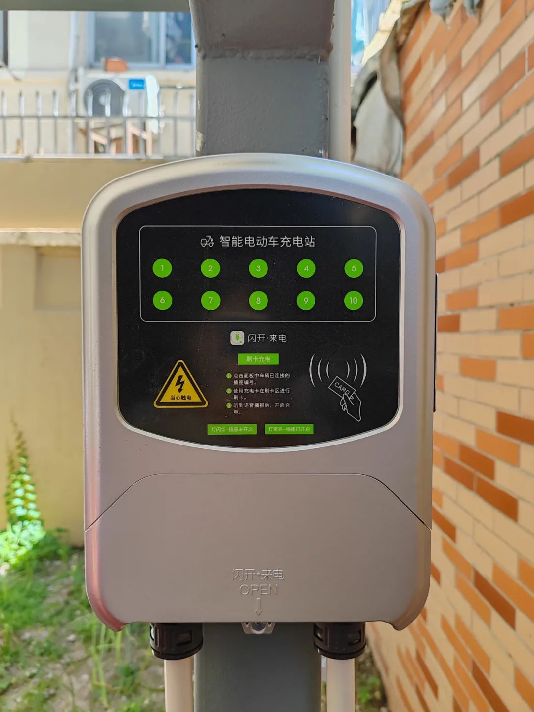 记者在小区看到,部分简易车棚内已安装了充电桩,每小时0.25元,即1元可充4小时,充电桩支持微信、支付宝扫码充电以及刷卡充电,满足了小区各年龄段人群的使用习惯。