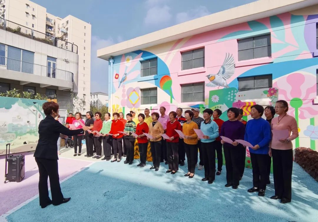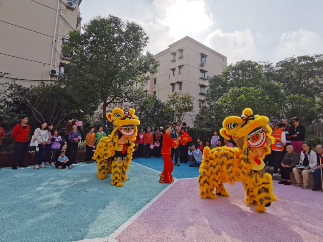 伴着欢快的音乐声,腾飞舞狮队用生动的舞狮表演拉开活动序幕,轻巧跳跃、起身独立等动作赢得围观群众阵阵喝彩。随后,20余位居民组成的彩虹合唱团带来一曲《我的北新泾》,引来众人齐声哼唱。