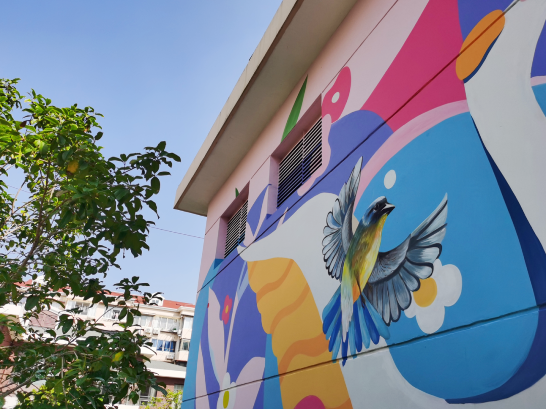 结合调查问卷和定期沟通,新泾五村居委会从居民口中得到了许多建设性意见。今年,在大家的群策群力下,生境花园再添新变化。透水地面绘上了靓丽色彩,原本单调的墙面变身为涂鸦墙,树桩也画上了可爱的动物形象。随着新泾五村无障碍环境改造的提升,生境花园主入口通道处的扶手得以更新,上下高度能兼容不同需求,直径小更易手握,新材质即便是夏季太阳暴晒也不会烫手。