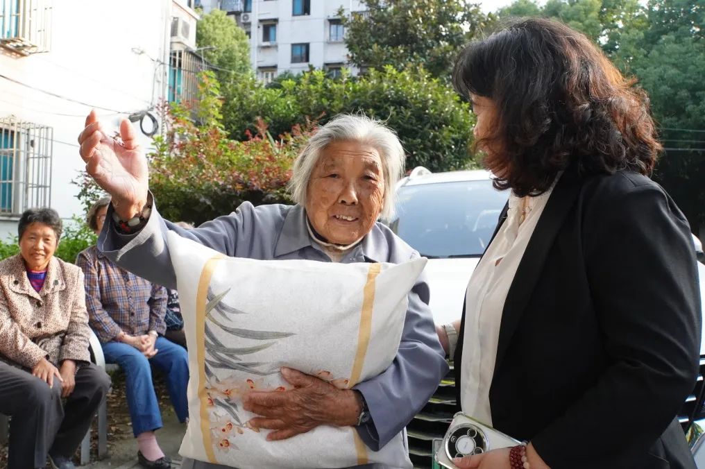 最后,这些承载着满满爱心的棉花抱枕被送到了百岁老人的手中。老人抚摸着柔软的抱枕,仿佛感受到了来自社区的温暖与关怀。