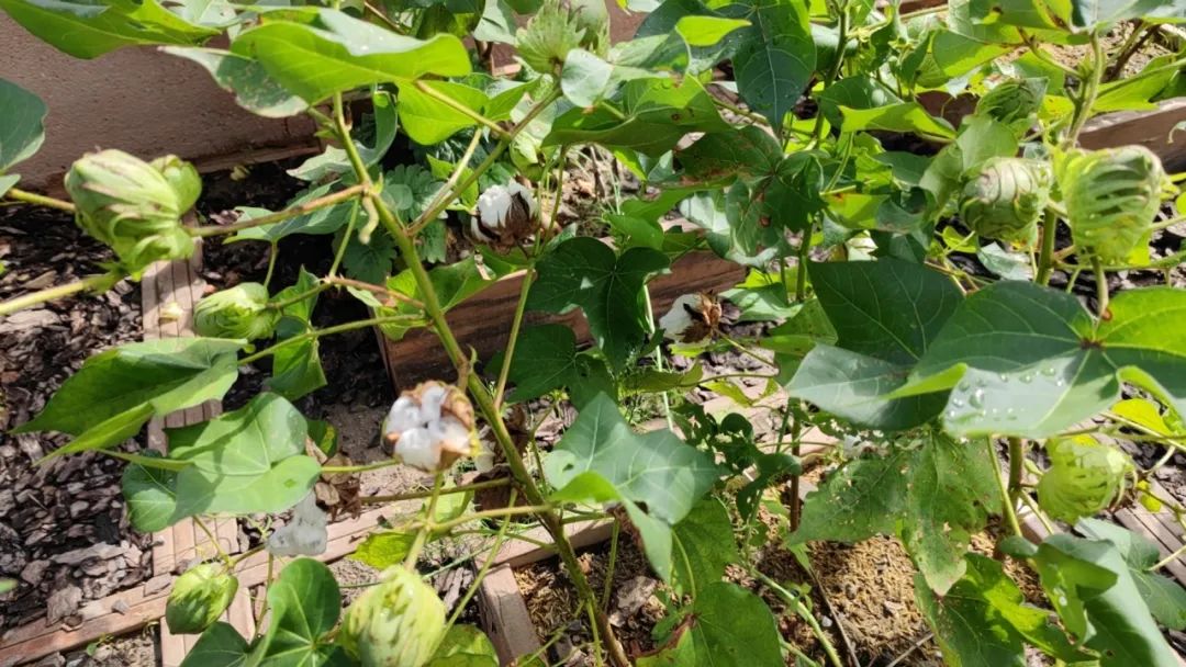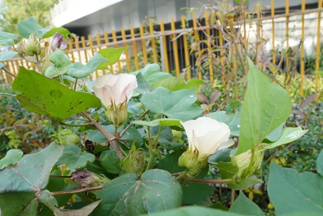 棉花,这个我们日常生活中离不开的植物,如今在中泾生境花园里,也有了自己的一片天地!在这个收获的季节,在花园的“一米菜园”内,几株挺拔的棉花树傲然挺立,枝头挂满了沉甸甸的棉桃,一朵朵洁白的棉花在清风中摇曳。