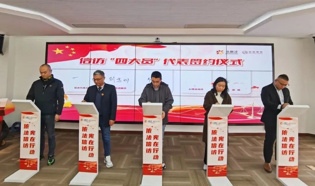 活动中,北新泾街道信访办与律师代表、调解员代表、信访代理员代表、心理咨询师代表签约,携手信访“四大员”同向而行,各方将共同发力,提升街道信访工作法治化水平。