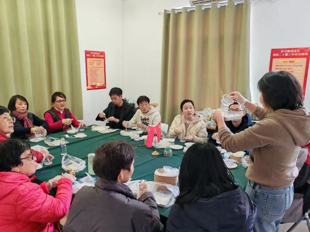 活动当天,居民区的阿姨们早早来到服务站,为活动做准备。她们精心挑选食材,调配比例。作为社区的热心志愿者,这些阿姨不仅是家中的烹饪高手,更是新泾镇温暖人心的“大使”,她们用心为快递小哥和商户们准备了这份特别的“冬日礼”。