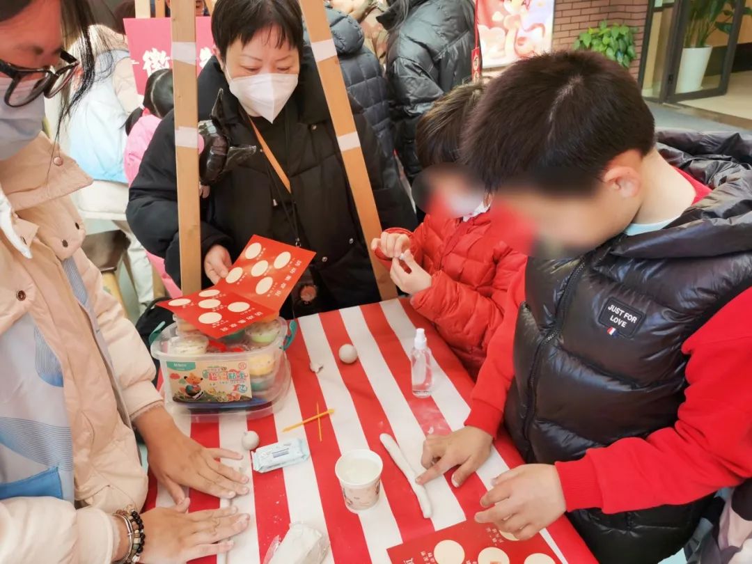 新年游园会在爱馨苑布置近十个互动摊位,结合了集章兑换新年礼品的形式,孩子们兴奋地穿梭在各摊位,亲身体验非遗手工和趣味游戏。泥塑小动物摊位,志愿者与大家一同发挥创意,把天马行空的想法融入黏土制作,不一会便创作出萌态各异的生肖蛇。
