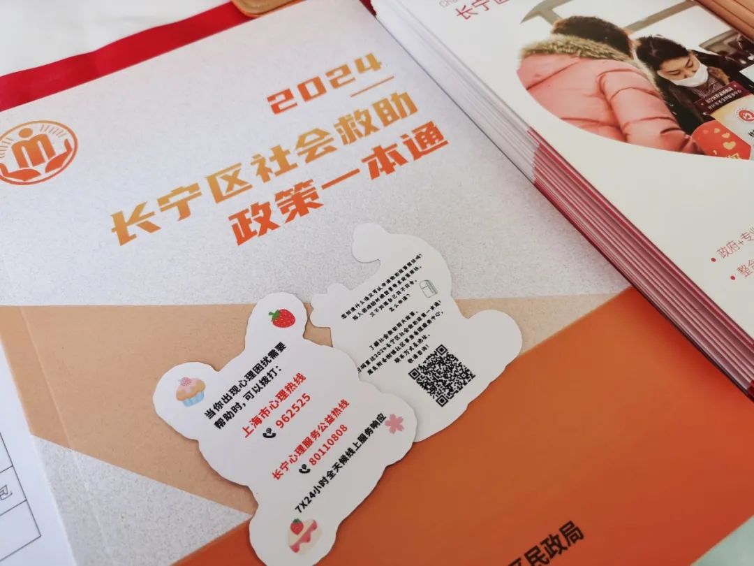 活动特别融入政策咨询与宣导,工作人员现场发放社会救助政策宣传书签。识别书签上的二维码,还可直接跳转至《2024长宁区社会救助政策一本通》,书中汇编了长宁现行的社会救助相关政策和办事须知。