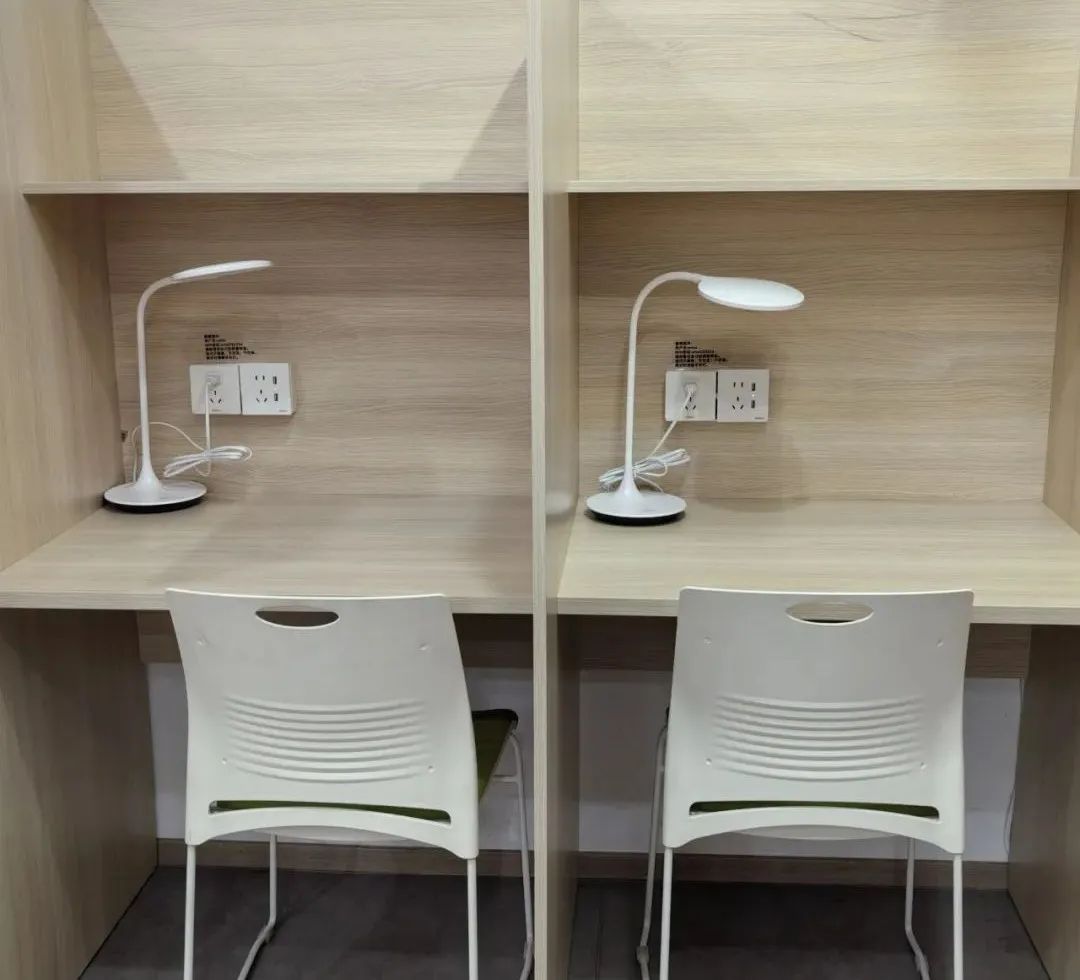 走进新华路街道图书馆,一股清新而宁静的氛围扑面而来。穿过书架林立的阅览区,记者来到了新布置的自习区域。一排排崭新的自习桌整齐排列,简约现代的设计风格与图书馆的整体环境完美融合。自习桌选用的是环保耐用的材质,桌面宽敞,足以容纳各类学习用品和电子设备。最令人惊喜的是,每张桌子都配备了多种电源插口和专业的护眼台灯,柔和而明亮的光线洒在桌面上,既有效保护了读者的视力,又营造出温馨静谧的学习氛围。
