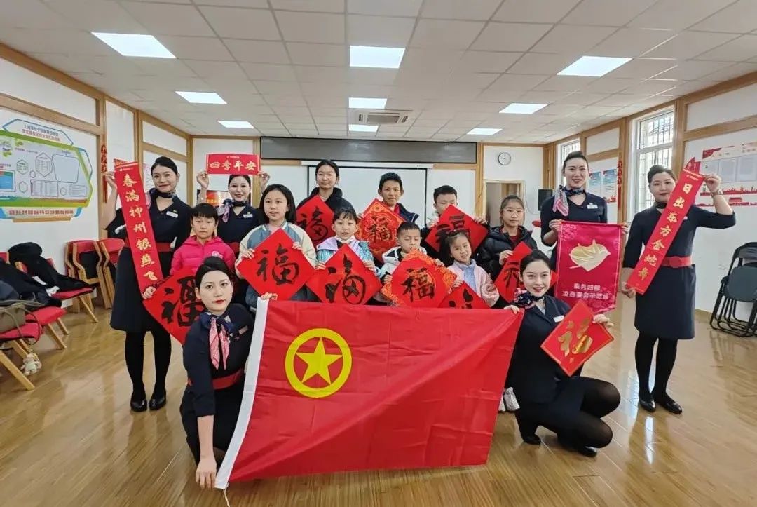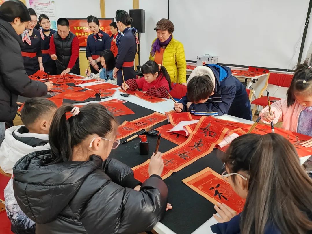 写春联、学刻印、逛集市……日前,程家桥街道团工委邀请东航客舱部乘务四部团总支的乘务员们来到宝北居民区,和居民们一起写春联、逛集市,并为老年居民们送上“福”字。
