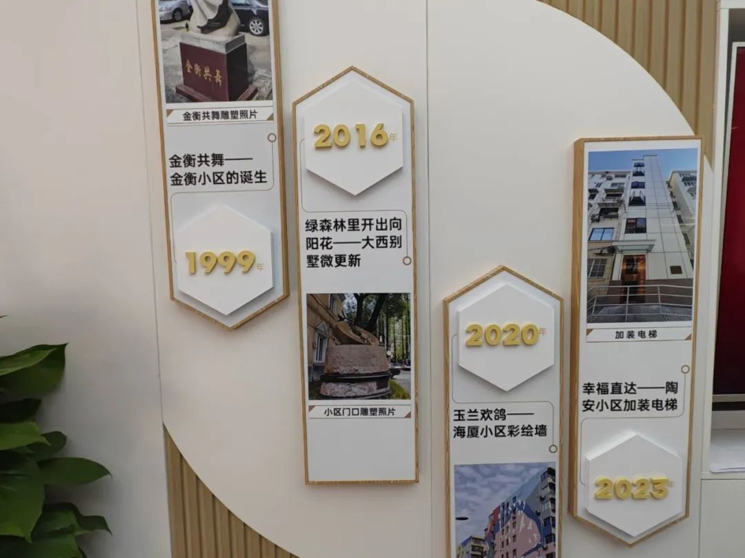 在文化展示方面,这次改造充分利用墙面空间,打造了特色文化墙,展示了陶家宅的发展历程、为老百姓办的实事,还有居民手工团队的作品。这些作品形式多样,有版画、刺绣等。“这些墙面不仅展示了居民的才艺,还增强了社区的文化氛围和居民的归属感。” 商琳说道。