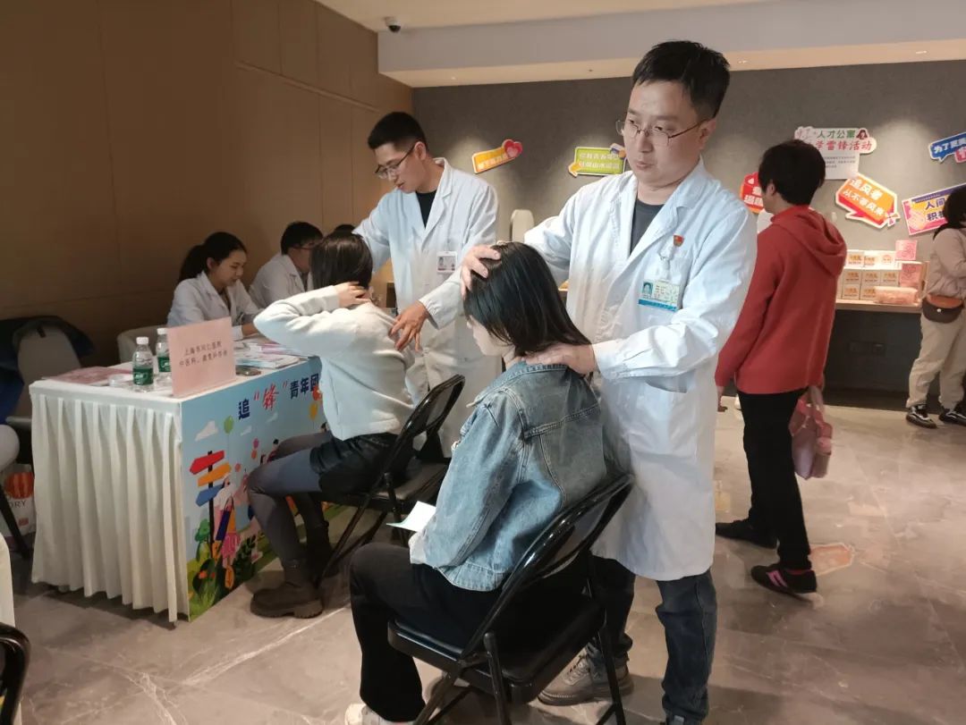 活动现场,同仁医院医疗团队与新泾镇社区卫生服务中心共同搭建的“健康驿站”成为最热区域。针对年轻人因长时间久坐、伏案工作而产生的颈椎、腰椎问题,医生让住户们现场体验刮痧、按摩等中医疗法,并定制养护方案。