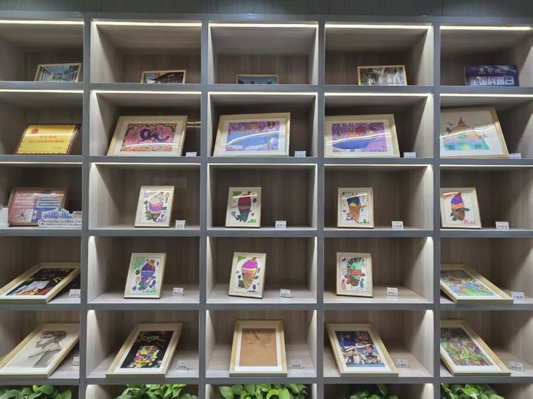 走进新华路街道图书馆,便能看到精心布置的展架上摆放着一幅幅充满童趣与创意的绘画作品。这些作品色彩鲜艳、构图大胆,孩子们用画笔描绘出他们眼中的世界,有的画着温馨的家庭场景,有的画着奇幻的海底世界,还有的画着充满活力的社区生活。每一幅画都充满了孩子们对生活的热爱和对未来的憧憬,展现了他们丰富的想象力和创造力。这些作品不仅让观众感受到孩子们的纯真与快乐,也让人看到了社区美育的丰硕成果。
