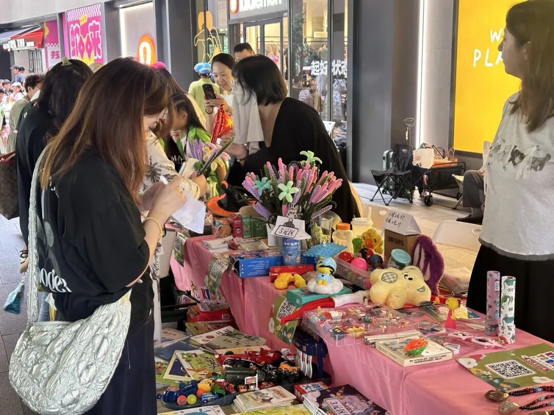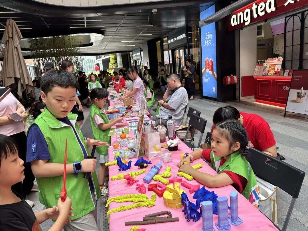 走进市集现场,五颜六色的摊位整齐排列,闲置玩具、趣味书籍、手工饰品等特色物品琳琅满目。孩子们化身“小小老板”,成为现场最亮眼的主角,有的趴在摊位前一笔一划设计价格牌,有的手持小喇叭大声吆喝“走过路过不要错过”。在这场真实的社会实践课里,孩子们不仅学会了如何与他人沟通、如何合理定价,更在交易与分享中懂得了担当与奉献——有小朋友特意将自己最爱的绘本拿来义卖,直言“希望把书送给需要的小伙伴,这样可以帮到更多的人”。此外,盲盒盲袋体验、3D打印玩具等特色摊位也备受青睐,孩子们在逛市集、买好物的同时,也解锁了更多新鲜的体验。