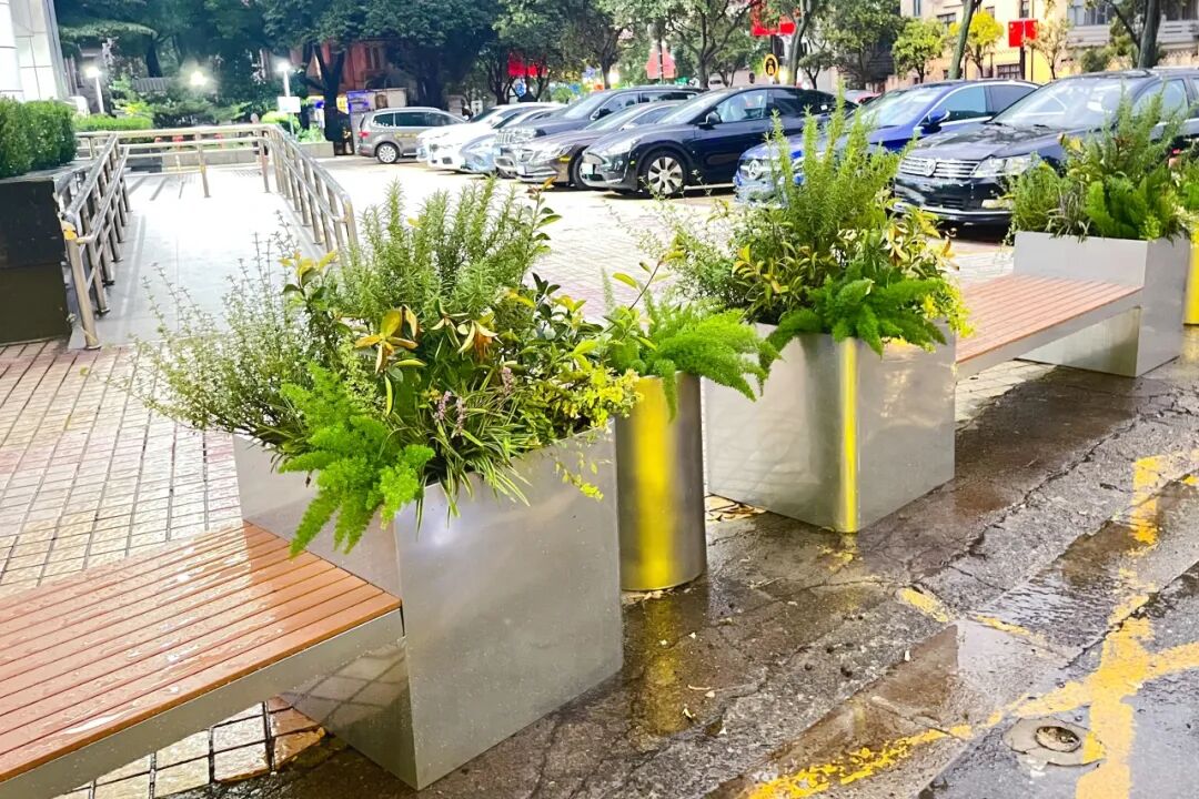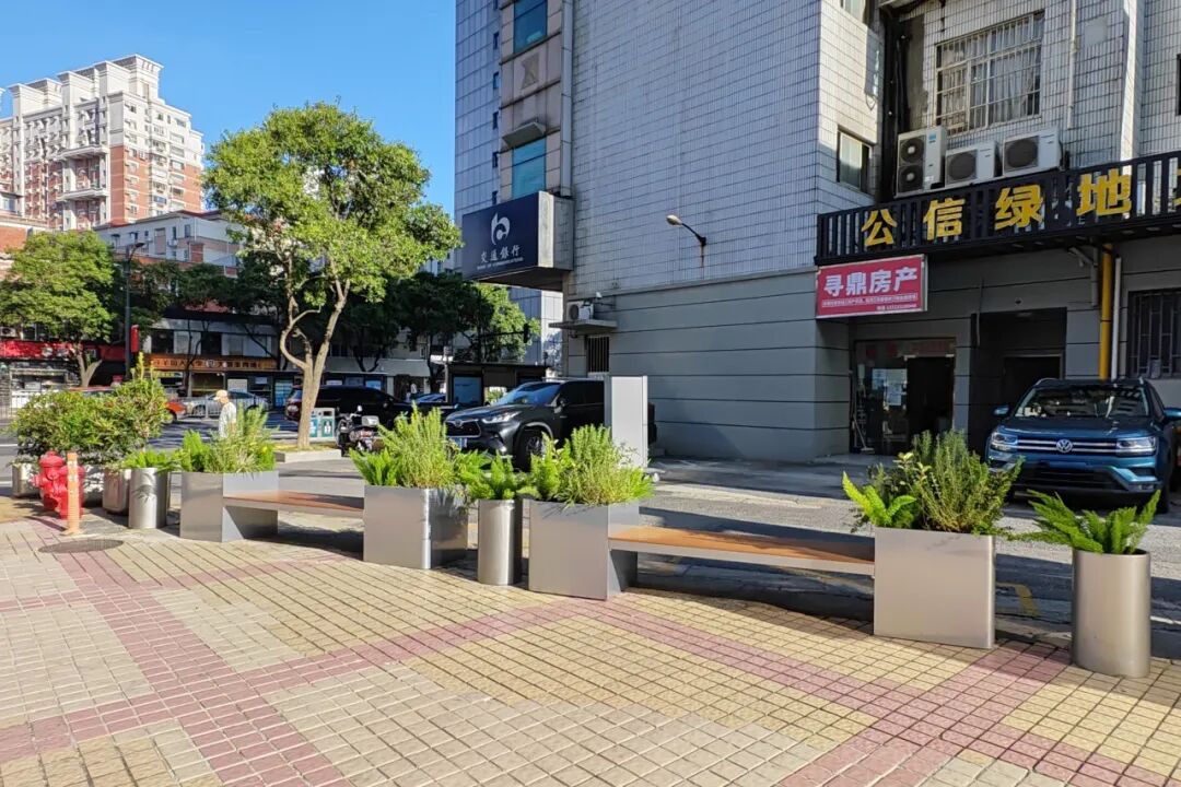 昔日被围栏占据的角落,如今已成为点亮街角的风景,这一民生实事项目不仅为居民和行人打造了便捷舒适的休憩点,还通过花箱与座椅的巧妙布局,在路旁广场与车道之间形成了一道安全屏障,让在周边活动的居民有了安心凭靠。