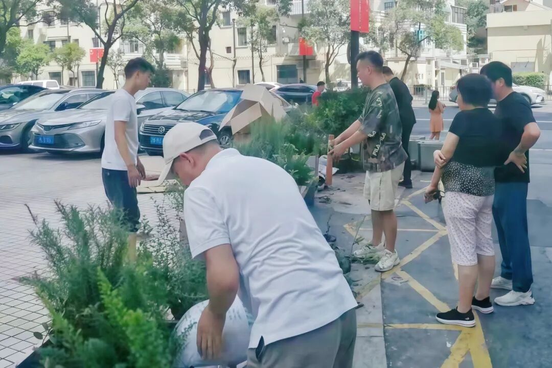 “在广泛听取居民意见并实地勘察后,我们参考了路边花园座椅的设计思路,采用了组合式花箱、座椅与圆角花盆相结合的方式,并在靠近岗亭处设置了公共吸烟点。”西浜居民区党总支书记李官平介绍,花箱和座椅特意设置在道砖旁的间隔区域,为车辆出入预留充足空间,确保不影响正常通行。