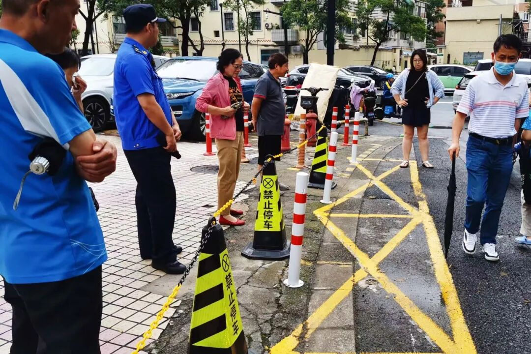 据了解,江苏路502弄道路较为狭长,沿途涉及3个居民小区、愚一幼儿园、兰州市政府驻沪联络处以及上海市信产通信服务有限公司。路口两侧分别是公信绿地大楼与上海市信产通信服务有限公司,整条路人流复杂,通行需求大。十多年前,因道路右侧临时停车,曾导致周边小区发生火警时,消防车无法快速进入,为此加装了立杆以杜绝乱停车现象。直到2024年5月,为改善行车条件,立杆被拆除,替换为临时围栏。