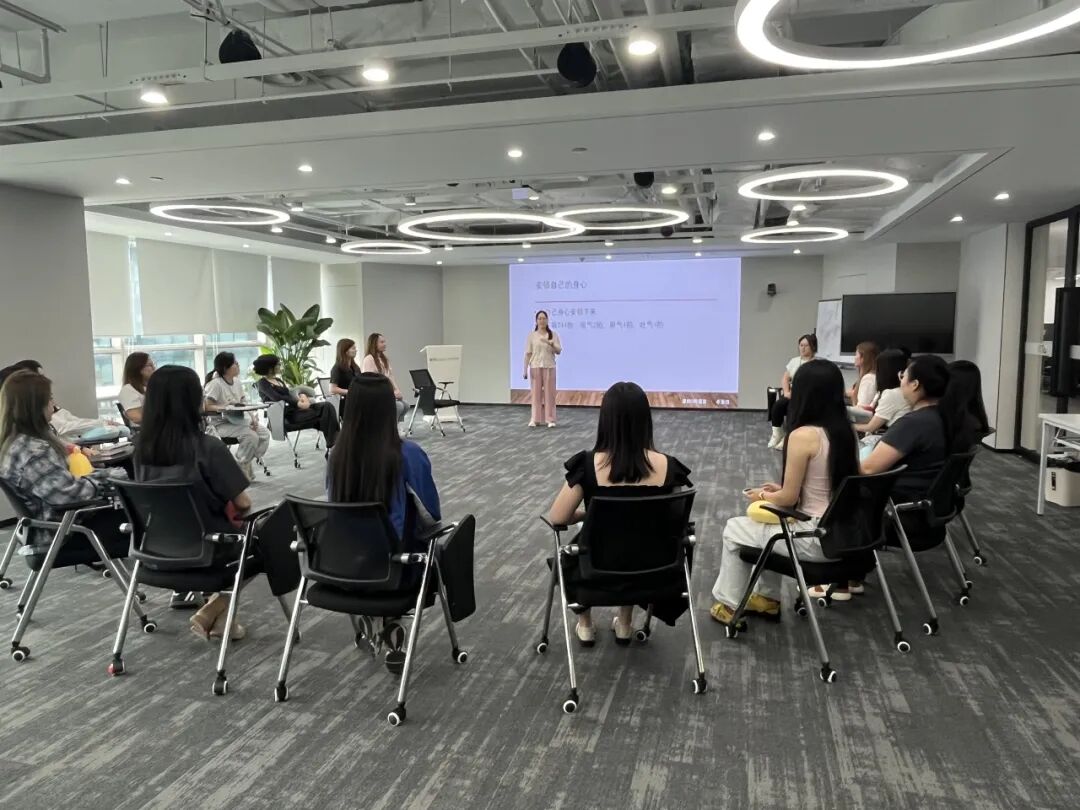 据了解,本次系列沙龙是国家二级心理咨询师卓亚佳主讲,9月至10月期间先后走进上海贝泰妮生物科技有限公司、上海容么么数字科技有限公司与易鑫集团,围绕“爱、身体与沟通”三大主题,帮助参与女性在互动体验中实现自我觉察、情绪释放与关系修复。