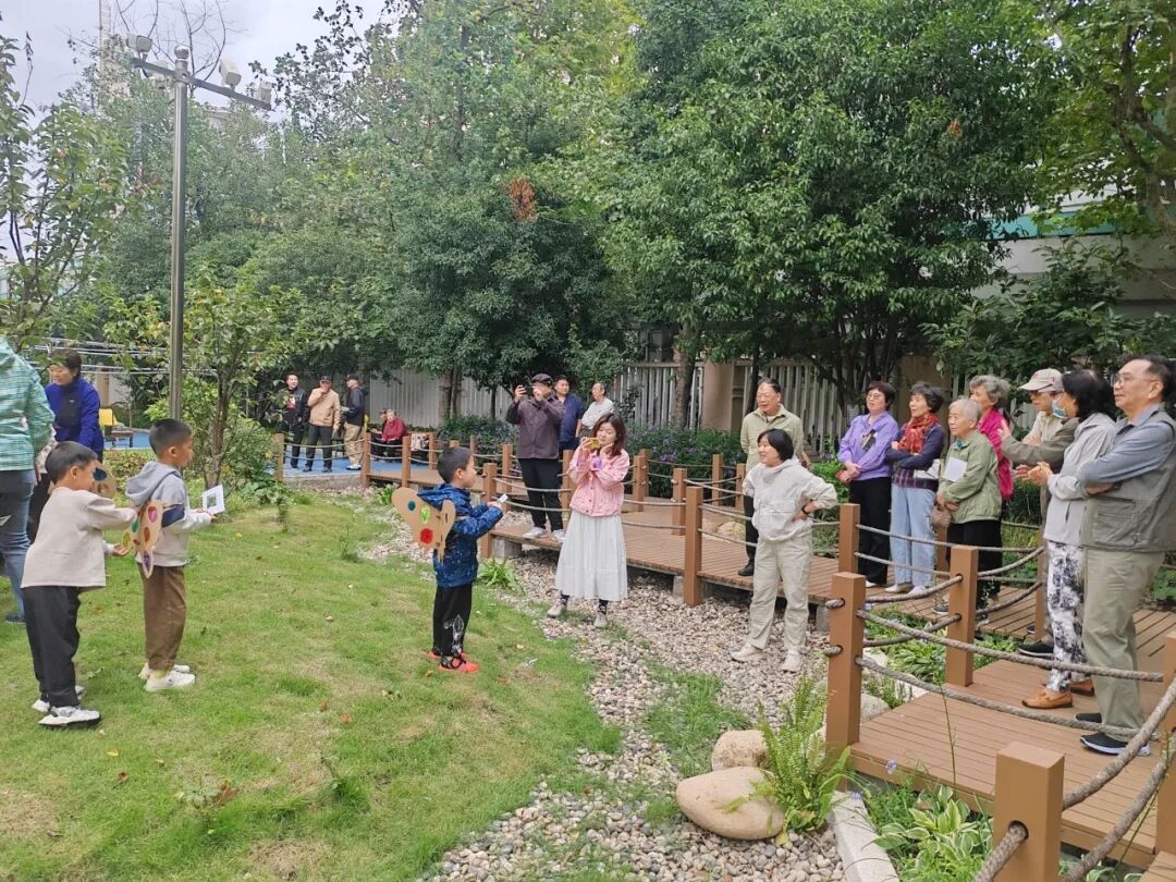 在生境花园改造过程中,居民区还积极推进居民共议共建,通过搭建“规划议事—施工参与—长效维护”全流程参与平台,鼓励居民从“旁观者”转变为花园设计、建设、管理的“主人翁”。这种参与不仅优化了植物配置、增设生态设施,更激发了居民参与社区治理的热情。一年来,由社区居民自发组建的“繁星”自治服务队主动承担起花园的日常维护和科普教育工作,成为这片城市森林的温暖“守护者”。