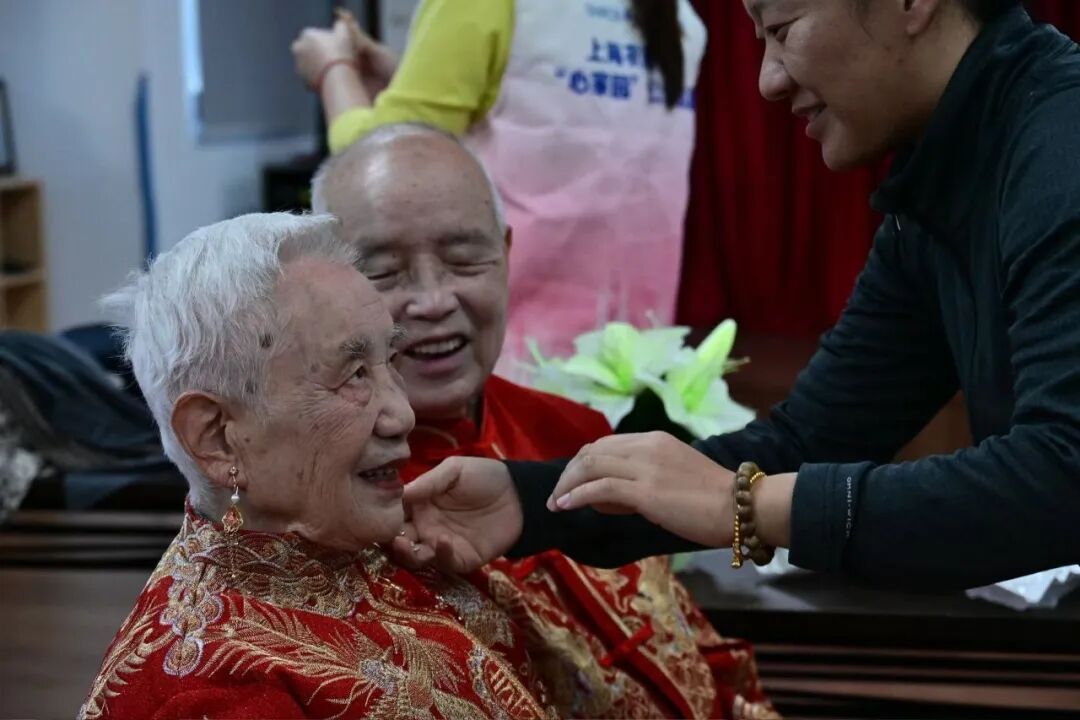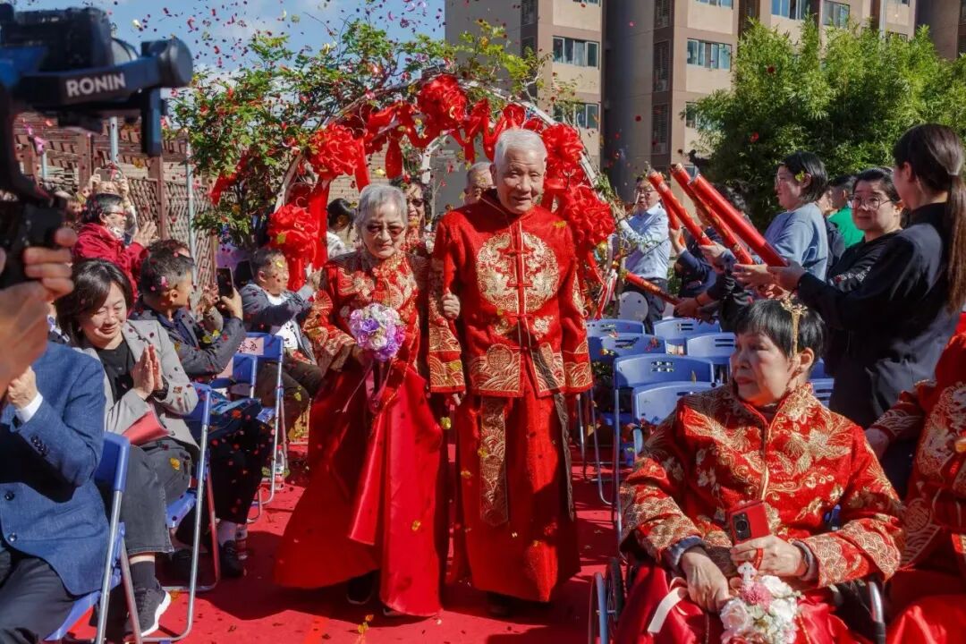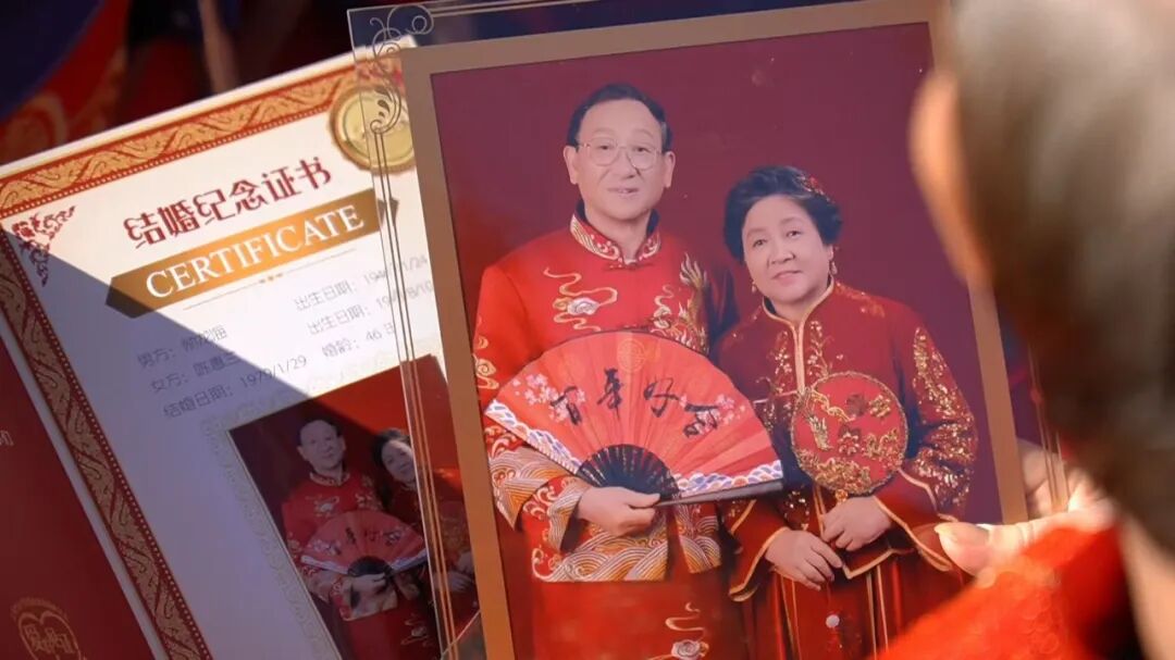 特别的仪式,弥补了时代的遗憾。对于1965年结婚的闻仁珊、龚文莲夫妇而言,本次活动圆了一个等待了60年的梦。“我们结婚时物质匮乏,”龚奶奶激动地说,“今天能走上红地毯,穿上秀禾,喝上香槟酒、吃上婚礼蛋糕,心里感动得不得了!”这场迟到了半个世纪的婚礼,显得格外甜蜜,这对环游过30多个国家的恩爱夫妻,在晚年终于披上了属于他们的“婚纱”。