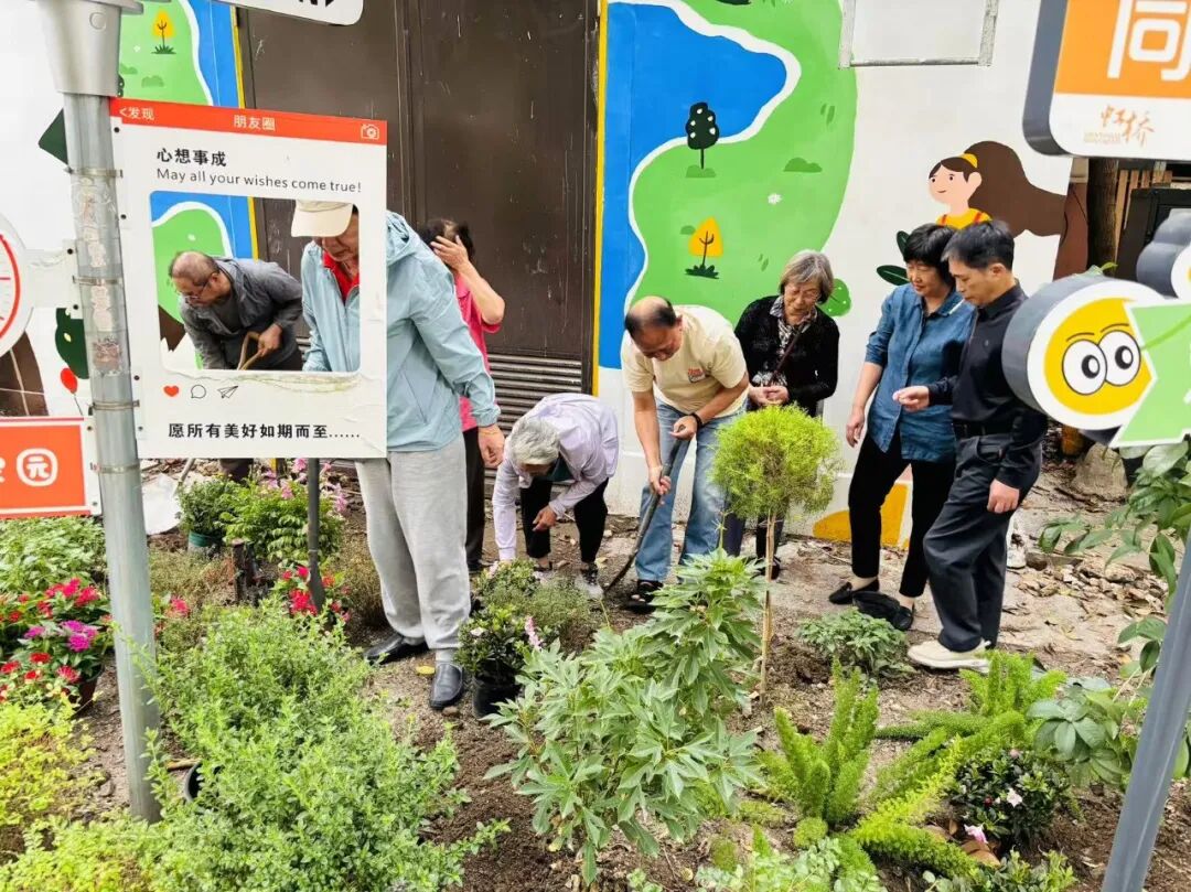 而此次改造的最大亮点,在于居民从“旁观者”转变为“设计者”与“执行者”。改造期间,19位来自两个居民区的居民组成种植组与墙绘组,分工协作。种植组松土、栽苗、浇水,为最后一片空地补植新绿;墙绘组调和色彩、勾勒图案,将朴素墙面变成展现社区活力的画布。