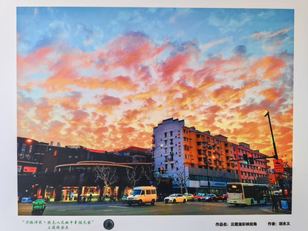 影友胡永义的《云霞溢彩映街角》则抓拍了火烧云时分的“乐居北渔”美丽街区,影像中有着清爽的天际线、浪漫的夕阳晚霞,也有归家途中的车流和奔波工作的新就业群体,传递出满满的城市烟火气。