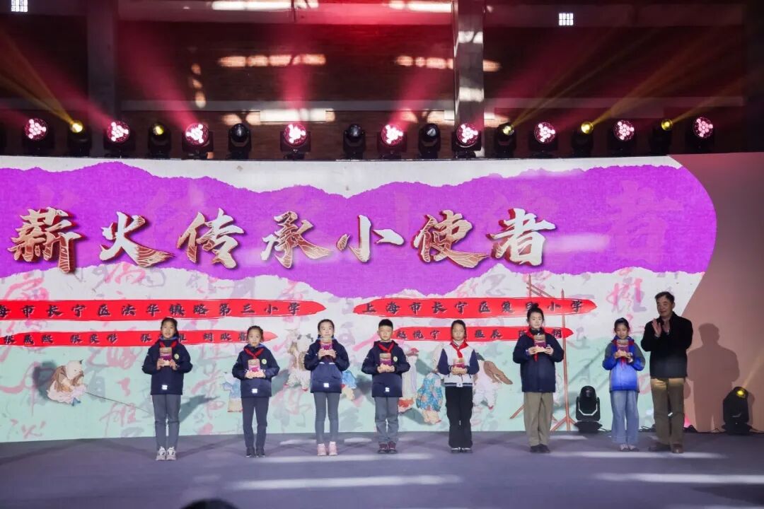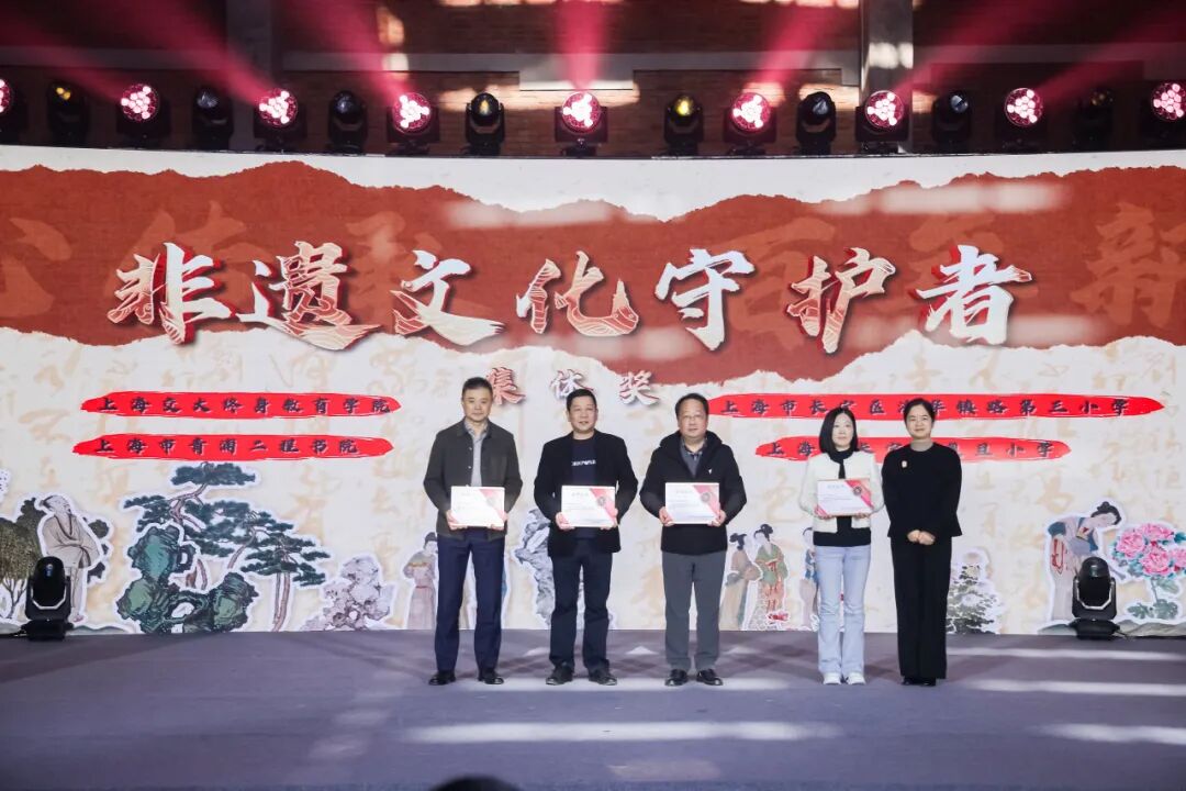 仪式中,上海交通大学终身教育学院、二程书院、法三小学、复旦小学等集体及毛芥暋、程思涵等个人荣获“非遗文化守护者”奖项,致敬他们为非遗传承注入的坚守与力量;法华镇路第三小学、长宁区复旦小学的学生代表被授予“薪火传承小使者”称号,让文化记忆在代代相传中焕发新生。