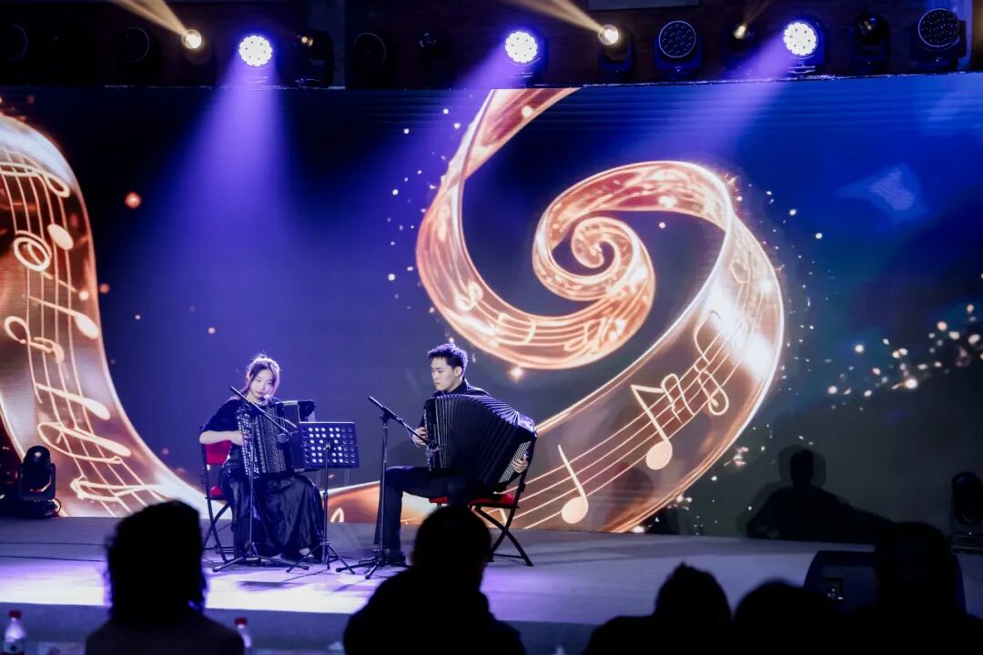 闭幕式最后一篇章“情融万象·共绘新华”以“温度是我们同在”为核心,凝聚起共筑未来的磅礴力量。上海音乐学院的师生们带来巴扬手风琴二重奏《自由探戈》《给你一点颜色》和音乐剧《We're All In This Together》,激昂的旋律与真挚的情感,传递出百年新华与二十载牡丹节共成长的初心,也展现了新时代新华人携手并进、共创辉煌的坚定信念。