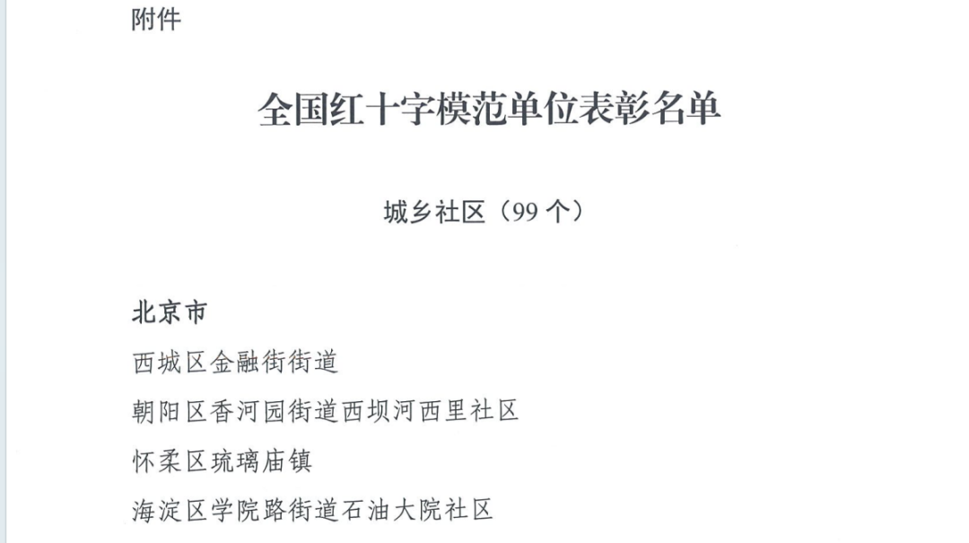 日前,中国红十字总会印发《关于表彰全国红十字模范单位的决定》,长宁区周家桥街道被授予“全国红十字模范单位”称号。