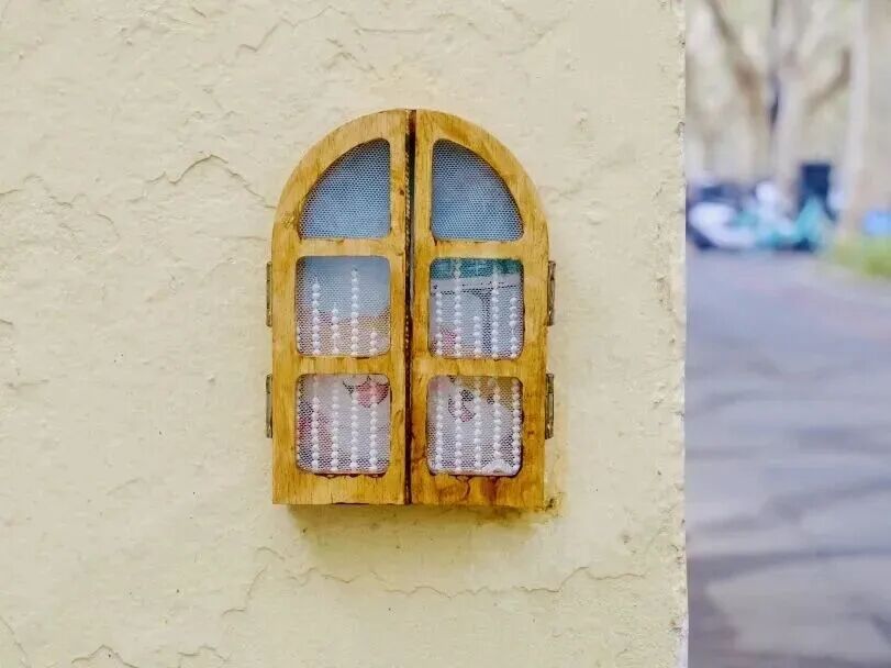 手指轻轻打开一扇木质小窗,便能看到两只微笑的小狗紧紧依偎,身后的新华路路牌格外亲切,仿佛现实与童话世界在同一个时空相连。