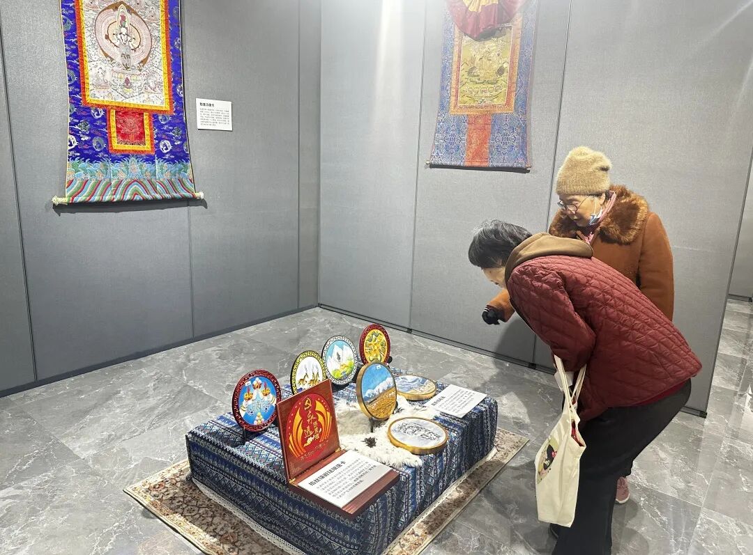 而虹桥·艺空间这个开放、亲民的社区“文化会客厅”,也为这场文化交流与援建情谊的展示提供了平台。这里展陈条件完备,能更好地保护唐卡等贵重展品,同时接近社区,方便周边群众就近观展,实现“文化进社区、美育在身边”。