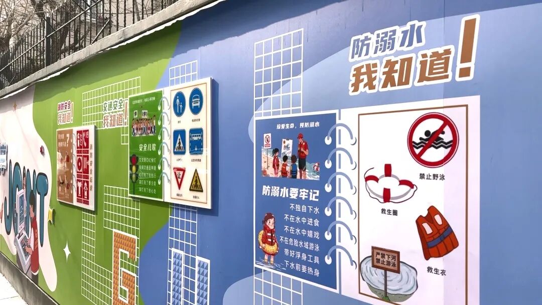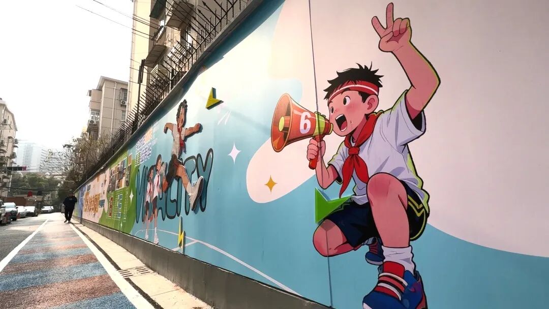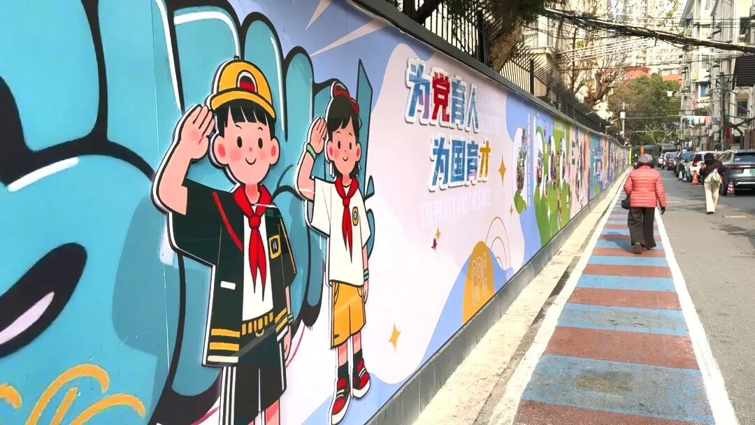 “有部分居民希望墙面颜色可以清新一些,也有居民提出,墙壁是古北路小学学生每日途经的地方,可以多加点小朋友喜欢的元素。”徐晶樱说,他们把居民对社区活力的期待融入设计,最终确定了蓝绿色为主调,结合学校周边环境加入动漫元素,并专门开辟展示党建共建与居民自治成果的板块,使墙绘自构思起便承载民意。