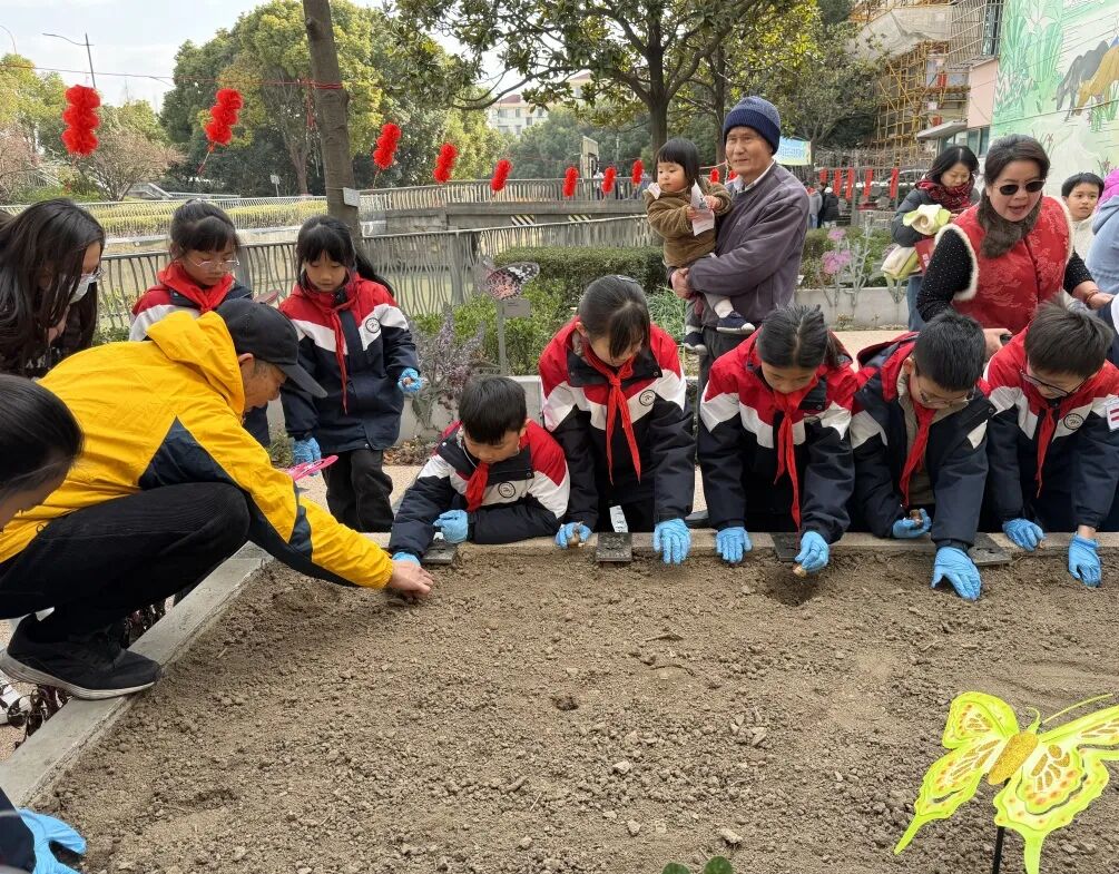 活动开始时,西郊学校的老师在中泾生境花园的“一米菜园”旁,为大家讲解郁金香种球的知识和种植方法。随后,“小泾泠”们亲手将种球埋入土中,体验播种的期待。中泾生境花园不仅是社区的生态空间,也已成为学生们亲近自然的“第二课堂”。据了解,西郊学校作为长期共建单位,定期组织师生参与花园的科普实践,从蝴蝶步道设计到植物手作,持续为社区注入青春活力,也让学生在参与中培养生态意识与实践能力。