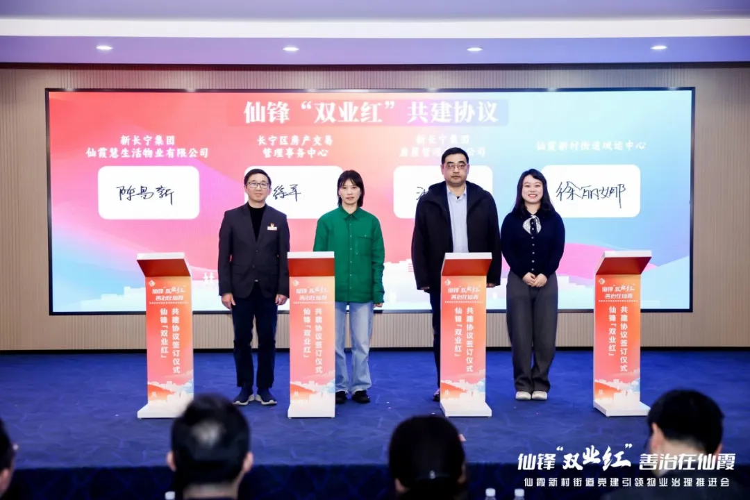 会上,区房产交易管理事务中心、街道城运中心、新长宁集团房屋管理有限公司及新长宁集团仙霞慧生活物业有限公司签订了共建协议,协力构建治理新格局。