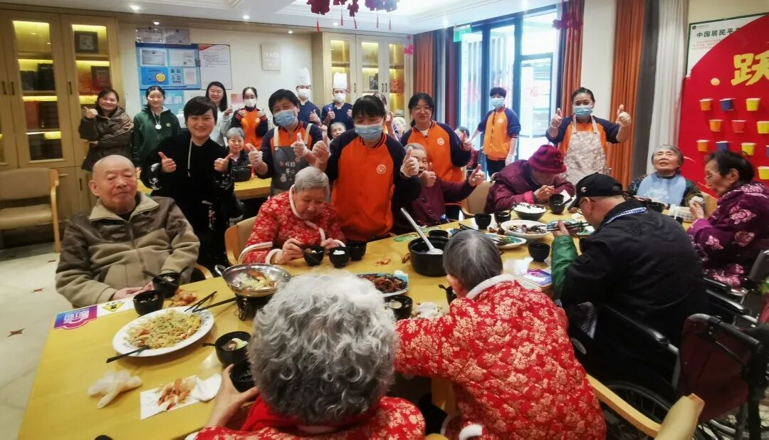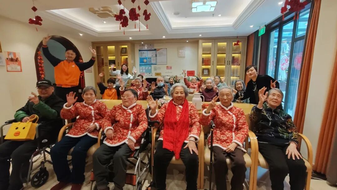 长者照护之家的工作人员与老人们开心过年
