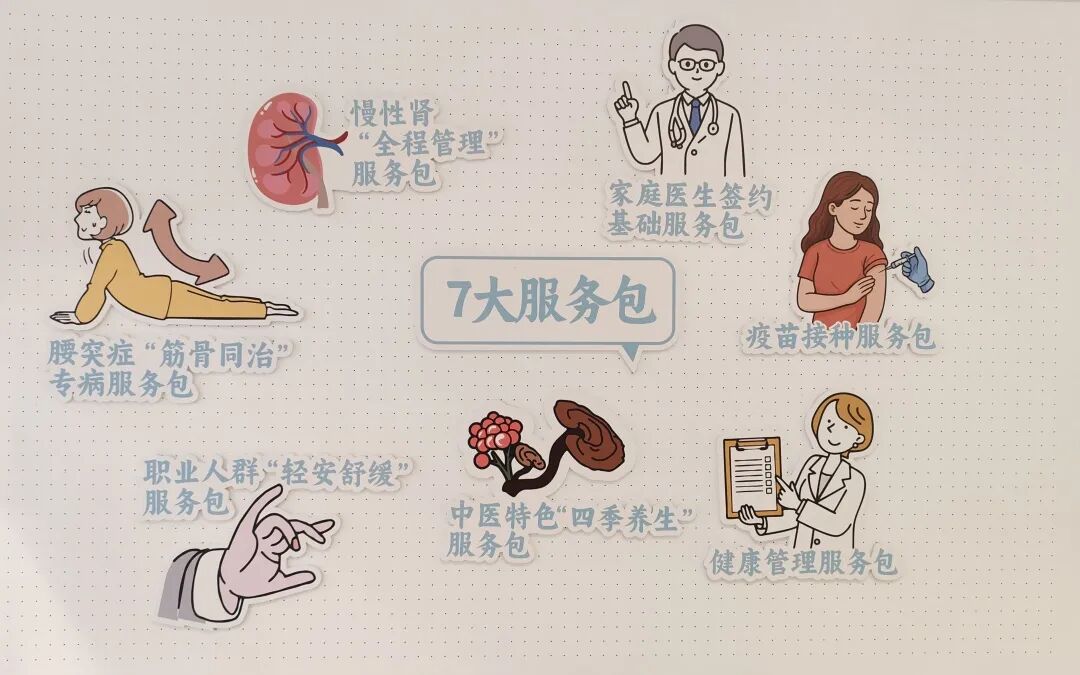 服务站启用当天,天山路街道社区卫生服务中心还发布了“一格一最+健康”优品七大服务包,精准覆盖不同人群的健康需求:面向全体居民的“家庭医生签约基础服务包”——让每一位居民拥有身边的“医生朋友”;针对职业人群的“轻安舒缓服务包”——聚焦久坐、压力、失眠等楼宇常见健康问题,推出轻腰枕、安心神贴等轻量化健康产品;腰突症“筋骨同治专病服务包”和慢性肾病“全程管理服务包”——慢病患者提供全程健康守护;中医特色“四季养生服务包”——将中医智慧融入现代生活,为商圈白领提供节气茶饮、时令调理等便捷养生服务;“疫苗接种服务包”及“健康管理服务包”——共同织密全人群健康防护网。