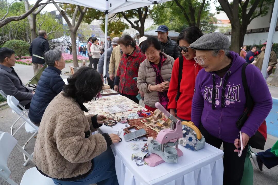 上午九点,水霞公园里热闹非凡。各式各样的活动展区组成邻光市集,围绕“最虹桥”“文汇仙霞”“书香睦邻”“美食仙霞”“孝亲茅台”“教联体共建”和“睦邻单位”七大板块设置互动游戏,让居民们在游园打卡的过程中感受睦邻文化的温度。